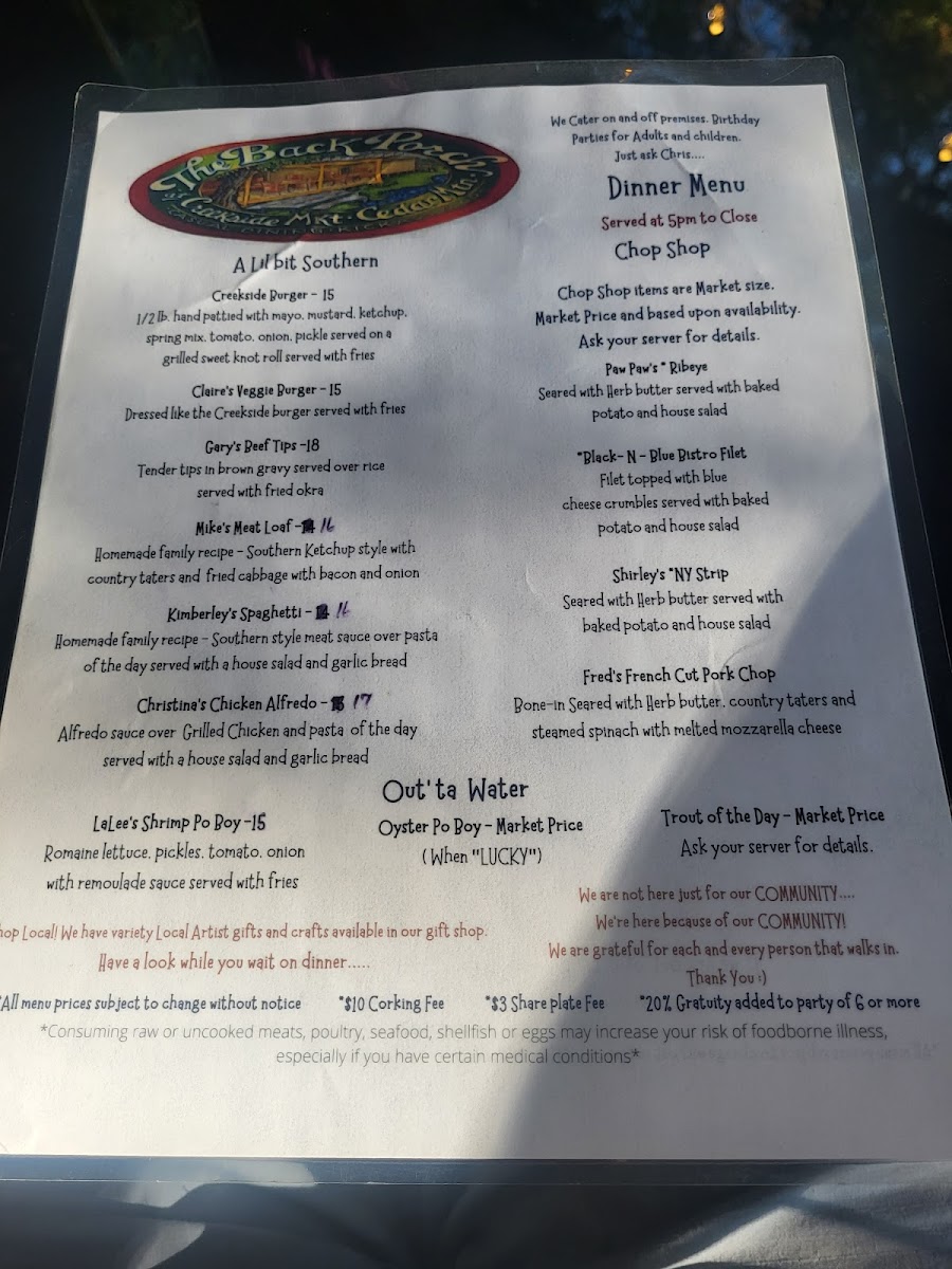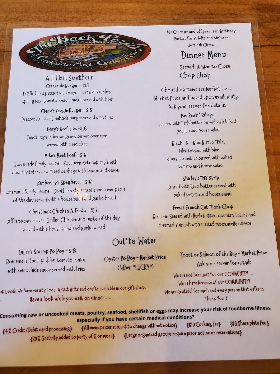 Creekside Market & Grill Menu
